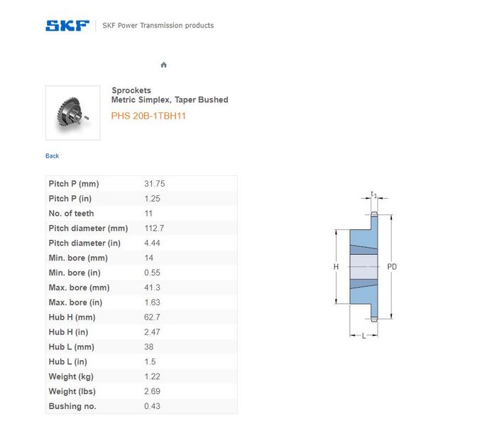 - SKF - 20B1 (1-1/4) SPROCKET 11 TEETH 1 ROW
