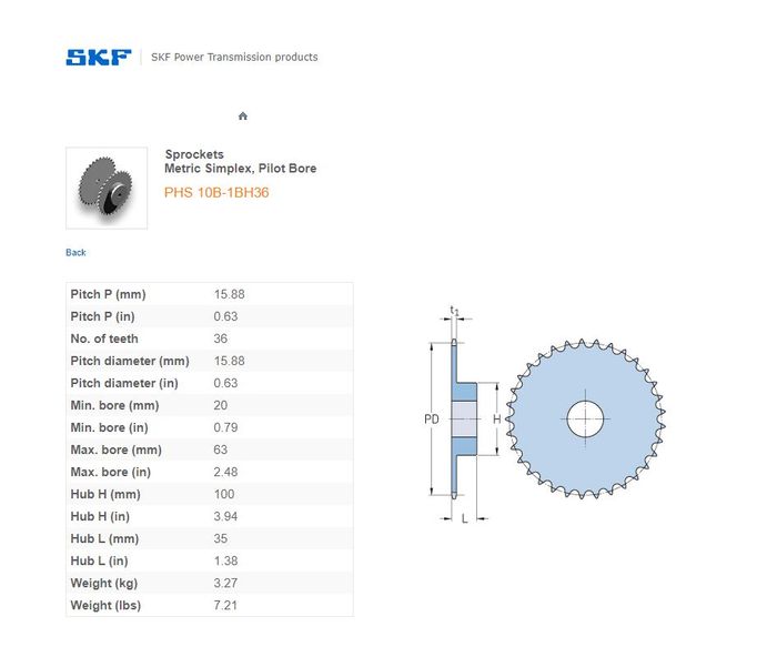 - SKF - 10B1/50/50H (5/8) SPROCKET 36 TEETH 1 ROW