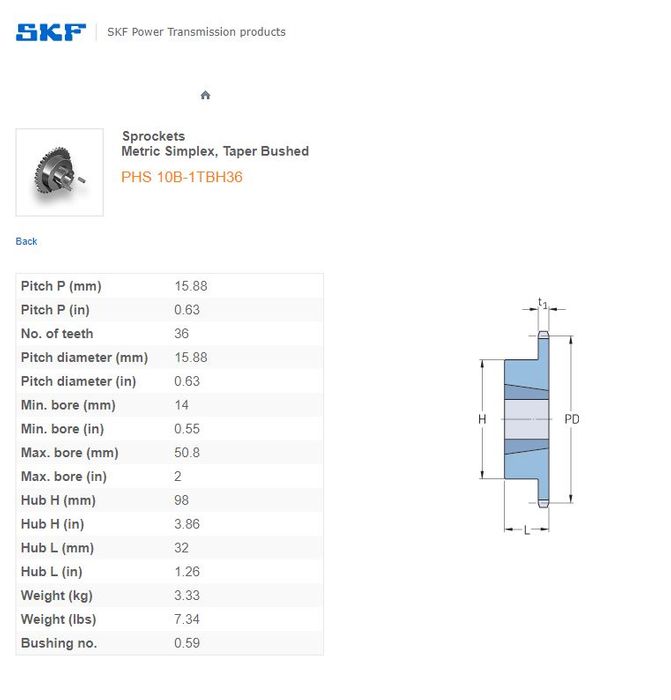 - SKF - 10B1/50/50H (5/8) SPROCKET 36 TEETH 1 ROW
