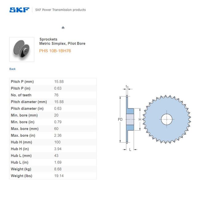 - SKF - 10B1/50/50H (5/8) SPROCKET 76 TEETH 1 ROW