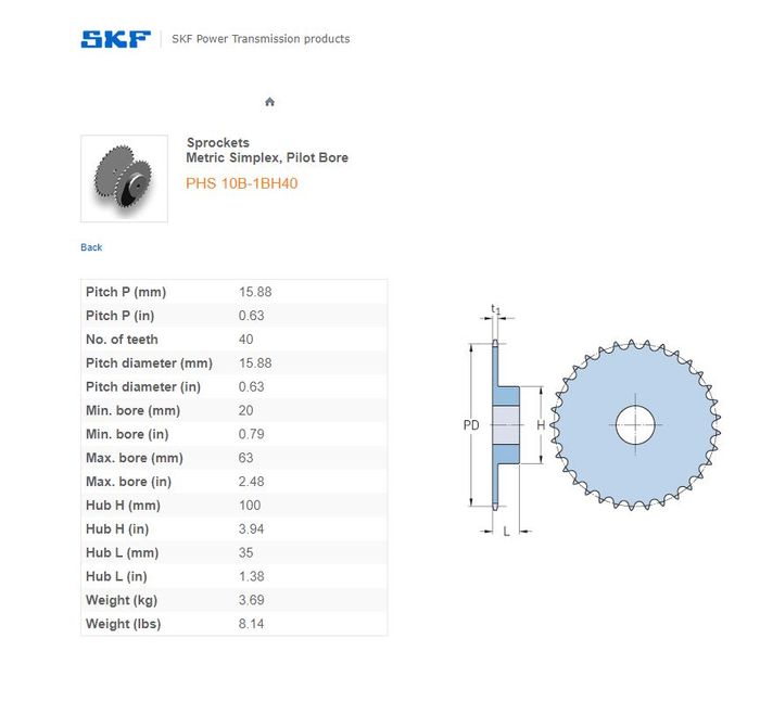 SKF - 10B1/50/50H (5/8) SPROCKET 40 TEETH 1 ROW