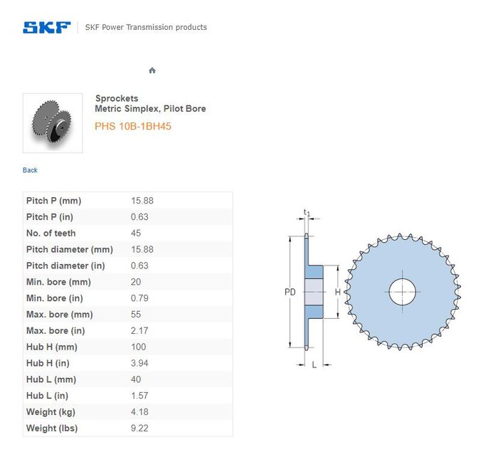 SKF - 10B1/50/50H (5/8) SPROCKET 45 TEETH 1 ROW