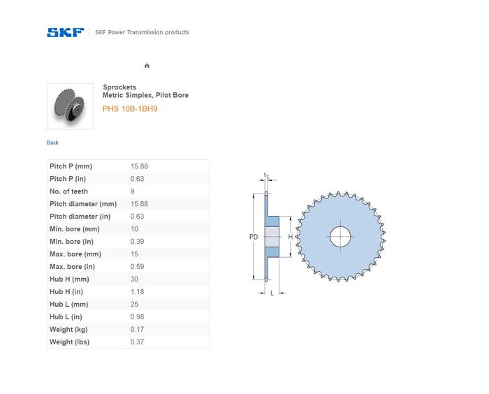 - SKF - 10B1/50/50H (5/8) SPROCKET 9 TEETH 1 ROW