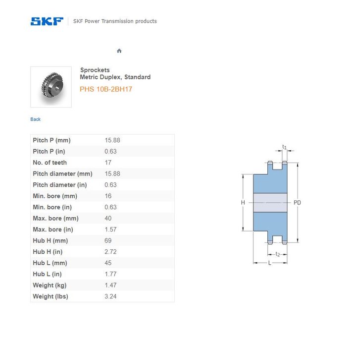 - SKF - 10B2 (5/8) SPROCKET 17 TEETH 2 ROW