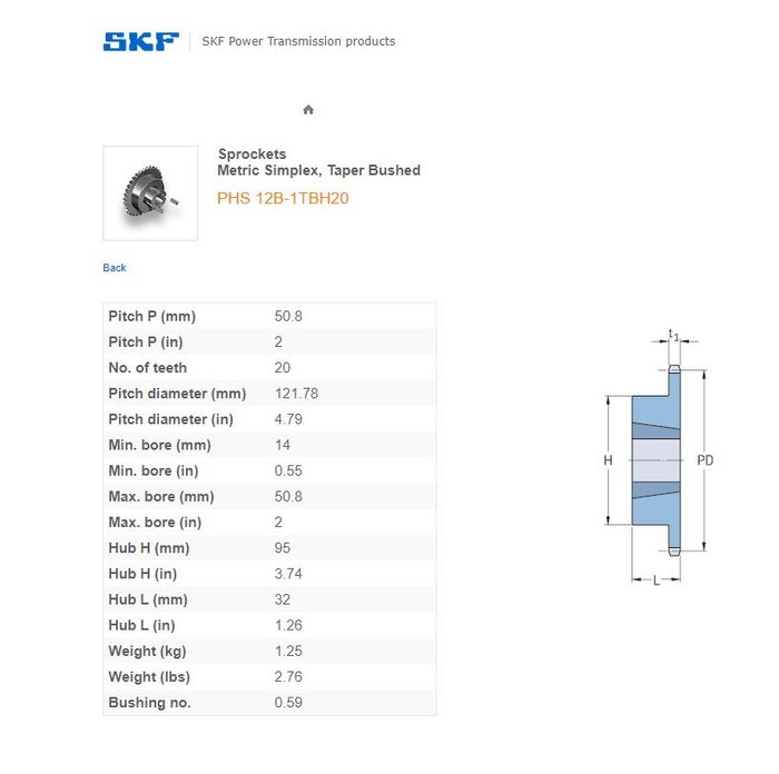 - SKF - 12B1/60/60H (3/4) SPROCKET 20 TEETH 1 ROW