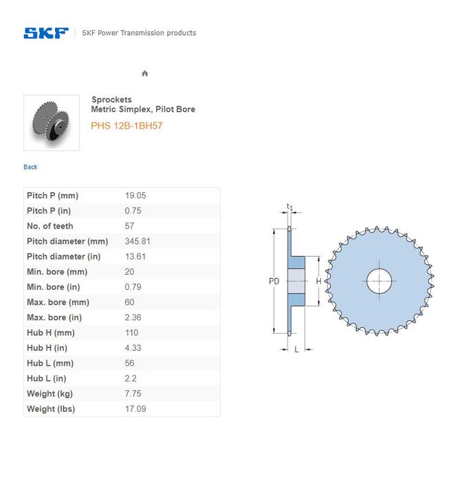 SKF - 12B1/60/60H (3/4) SPROCKET57 TEETH 1 ROW