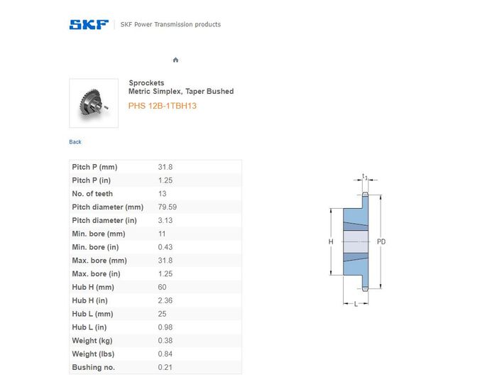 - SKF - 12B1/60/60H (3/4) SPROCKET 13 TEETH 1 ROW