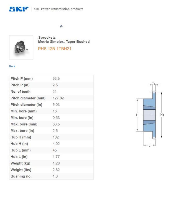 - SKF - 12B1/60/60H (3/4) SPROCKET 21 TEETH 1 ROW