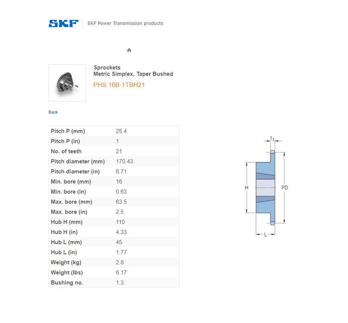SKF - 16B1 (1 Inch) SPROCKET 21 TEETH 1 ROW