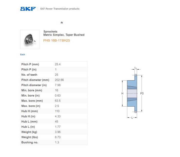 - SKF - 16B1 (1 Inch) SPROCKET 25 TEETH 1 ROW