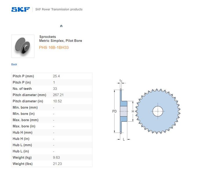 SKF - 16B1 (1 Inch) SPROCKET 33 TEETH 1 ROW