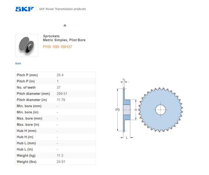 - SKF - 16B1 (1 Inch) SPROCKET 37 TEETH 1 ROW