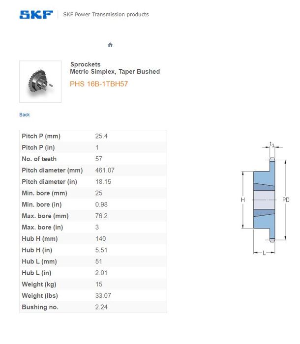 - SKF - 16B1 (1 Inch) SPROCKET 57 TEETH 1 ROW