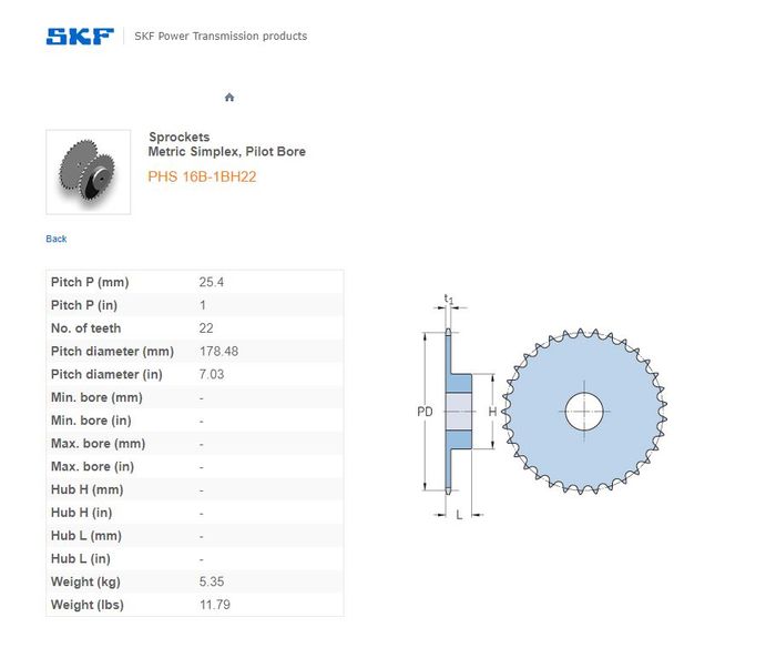 - SKF - 16B1 (1 Inch) SPROCKET 22 TEETH 1 ROW