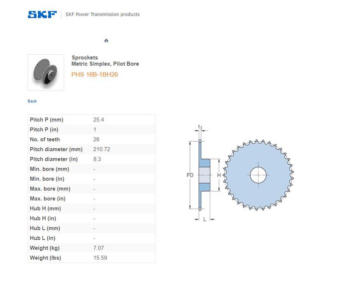 - SKF - 16B1 (1 Inch) SPROCKET 26 TEETH 1 ROW