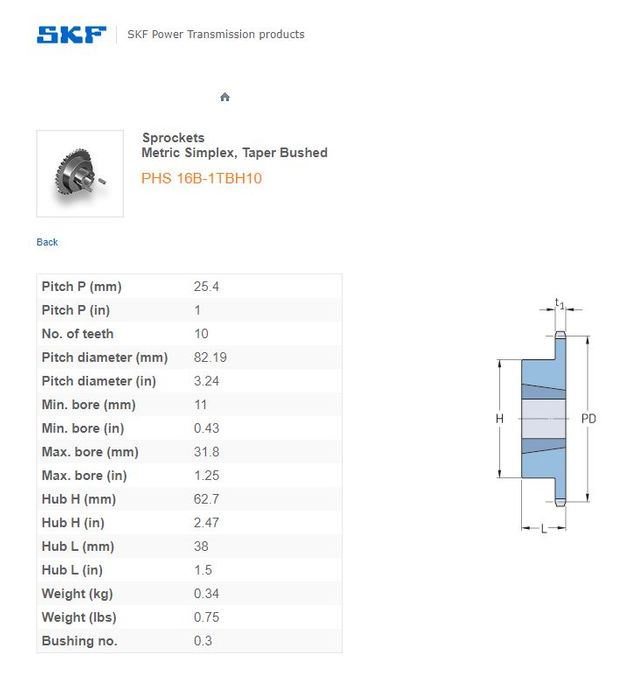 SKF - 16B1 (1 Inch) SPROCKET 10 TEETH 1 ROW