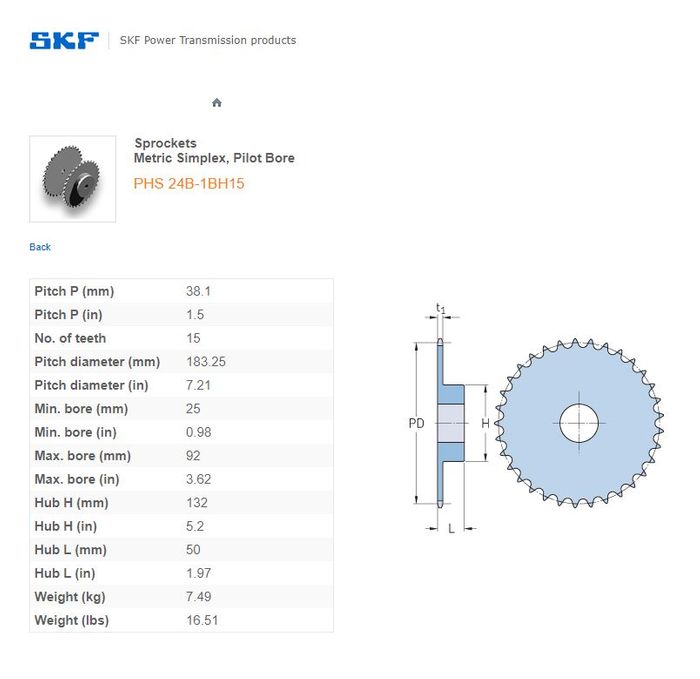 - SKF - 24B1 (1-1/2) SPROCKET 15 TEETH 1 ROW