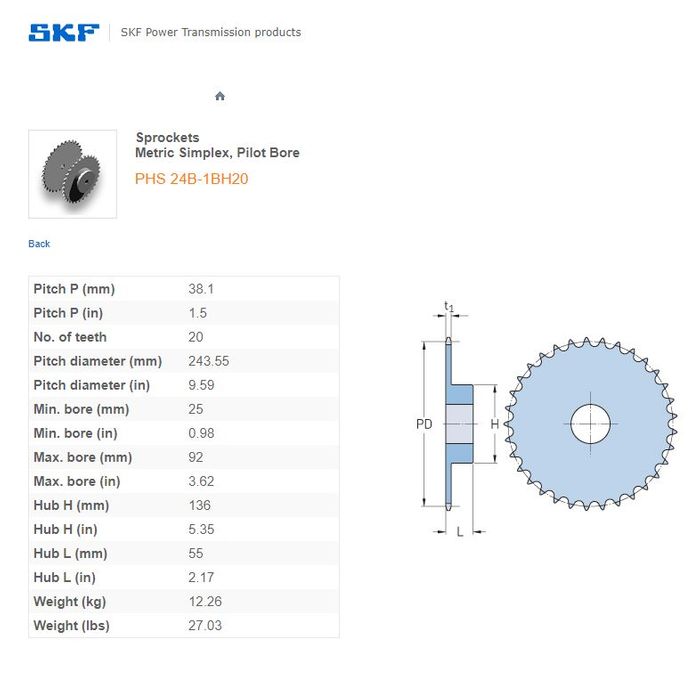 - SKF - 24B1 (1-1/2) SPROCKET 20 TEETH 1 ROW