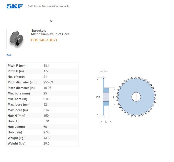SKF - 24B1 (1-1/2) SPROCKET 21 TEETH 1 ROW