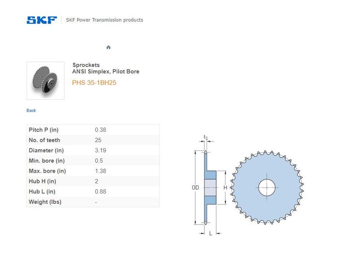- SKF - 35-1 ASA(3/8) SPROCKET 25 TEETH 1 ROW