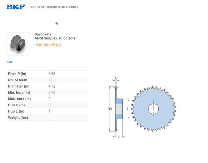 - SKF - 50-1/50H ASA(5/8) SPROCKET 22 TEETH 1 ROW