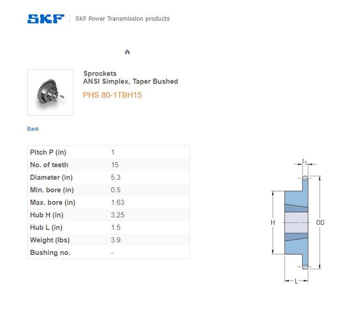 - SKF - 80-1/80H ASA(1 Inch) SPROCKET 15 TEETH 1 ROW