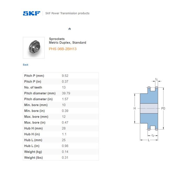 - SKF - 06B2 (3/8) SPROCKET 13 TEETH 2 ROW
