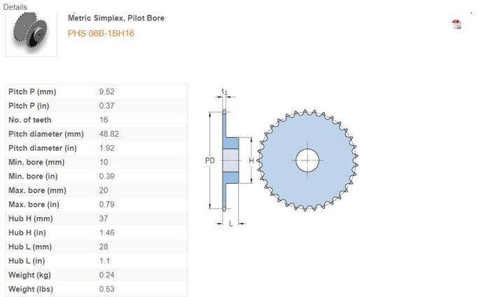 - SKF - 06B1 (3/8) SPROCKET 16 TEETH 1 ROW