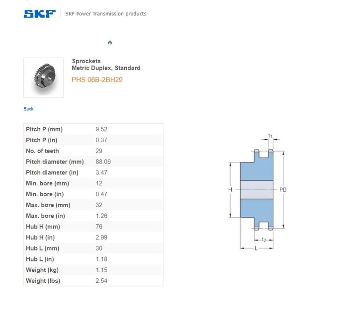 - SKF - 06B2 (3/8) SPROCKET 29 TEETH 2 ROW