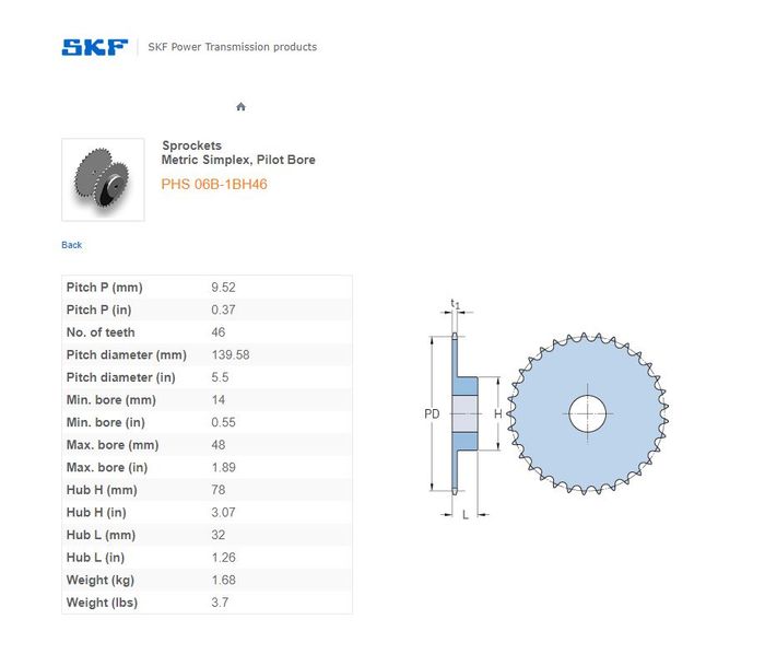 - SKF - 06B1 (3/8) SPROCKET 46 TEETH 1 ROW
