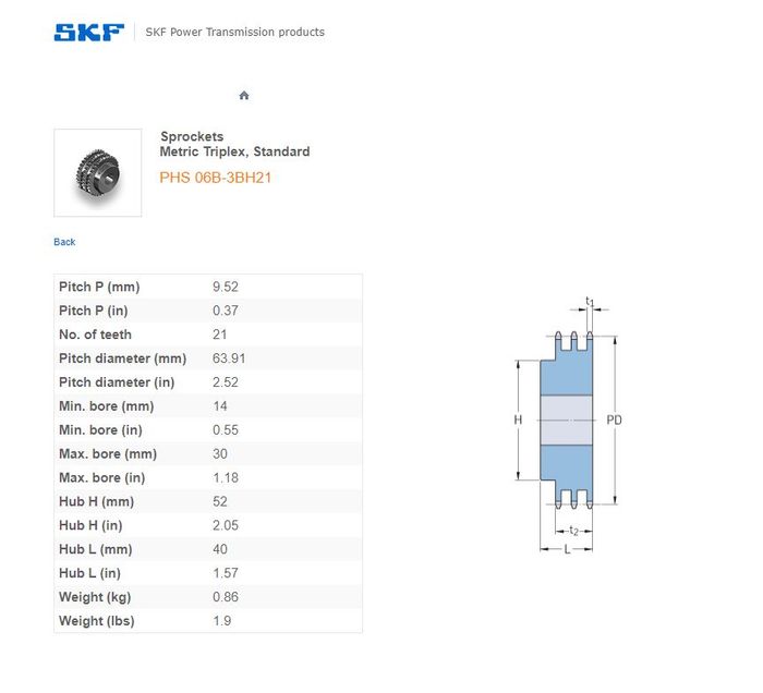 SKF - 06B2 (3/8) SPROCKET 21 TEETH 2 ROW