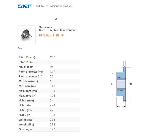 - SKF - 08B1/40/40H (1/2) SPROCKET 19 TEETH 1 ROW