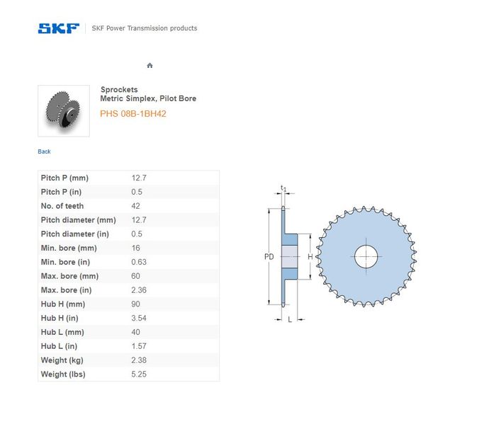 - SKF - 08B1/40/40H (1/2) SPROCKET 42 TEETH 1 ROW