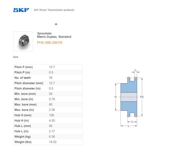 - SKF - 06B2 (3/8) SPROCKET 76 TEETH 2 ROW