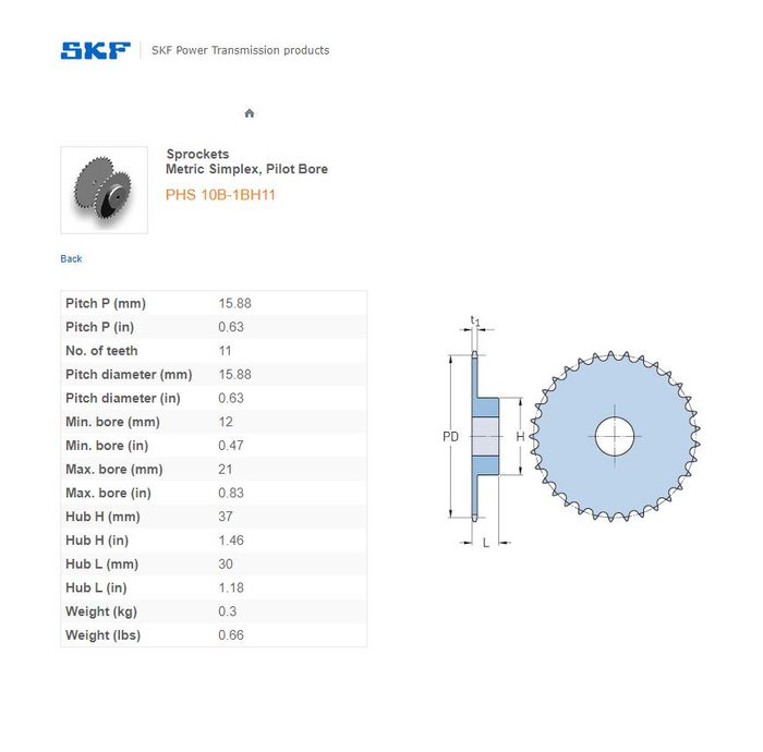 - SKF - 10B1/50/50H (5/8) SPROCKET 11 TEETH 1 ROW