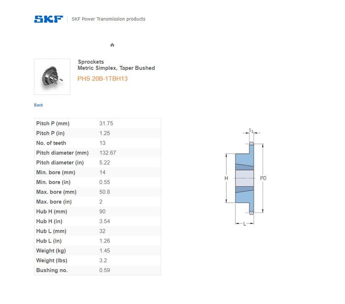 - SKF - 20B1 (1-1/4) SPROCKET 13 TEETH 1 ROW