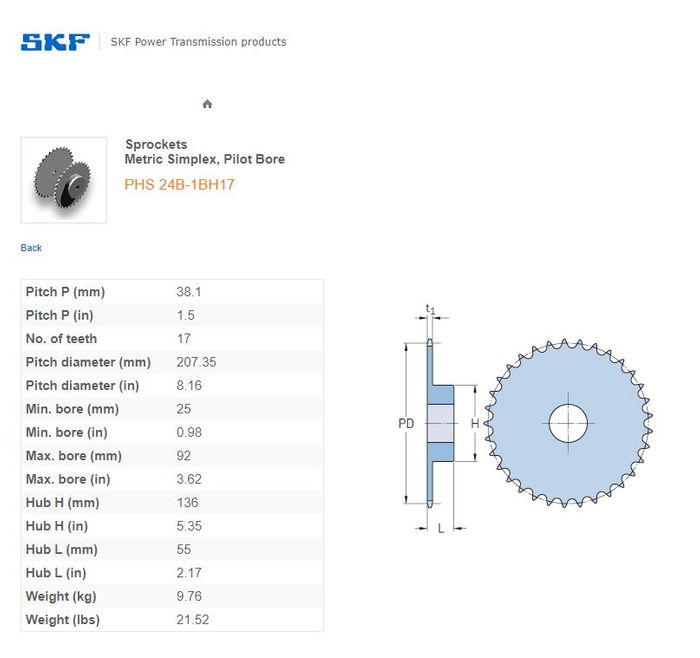 SKF - 24B1 (1-1/2) SPROCKET 17 TEETH 1 ROW