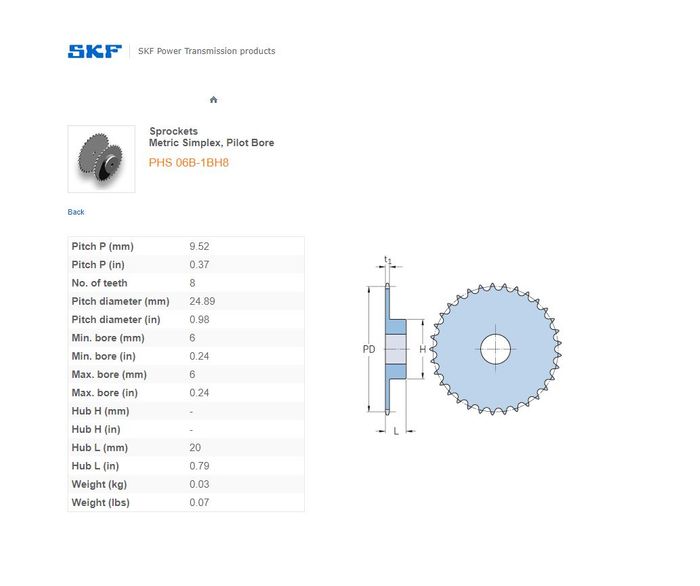 - SKF - 06B1 (3/8) SPROCKET 8 TEETH 1 ROW