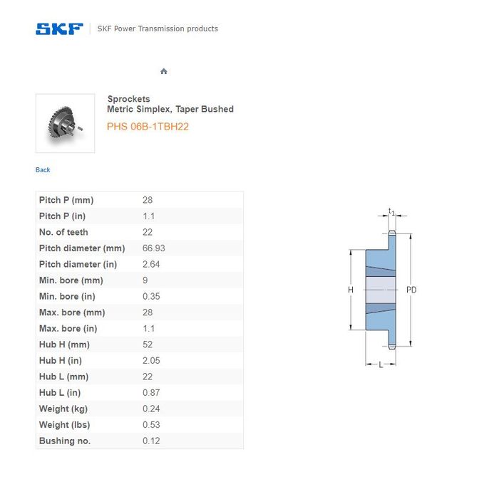 - SKF - 06B1 (3/8) SPROCKET 22 TOOTH 1 ROW