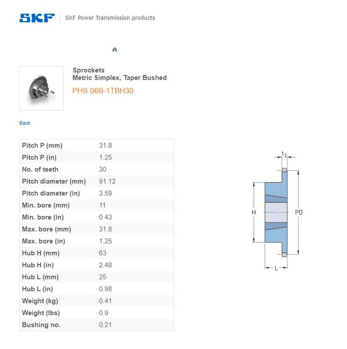 - SKF - 06B1 (3/8) SPROCKET 30 TOOTH 1 ROW