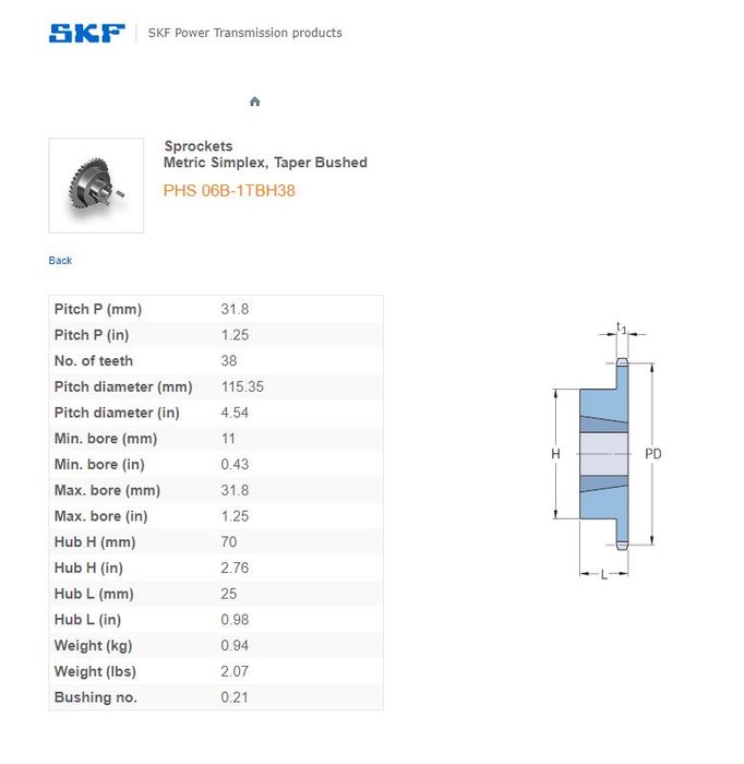 - SKF - 06B1 (3/8) SPROCKET 38 TOOTH 1 ROW