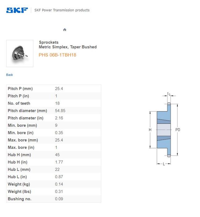 - SKF - 06B1 (3/8) SPROCKET 18 TOOTH 1 ROW