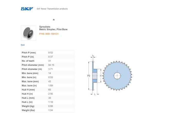 - SKF - 06B1 (3/8) SPROCKET 31 TEETH 1 ROW