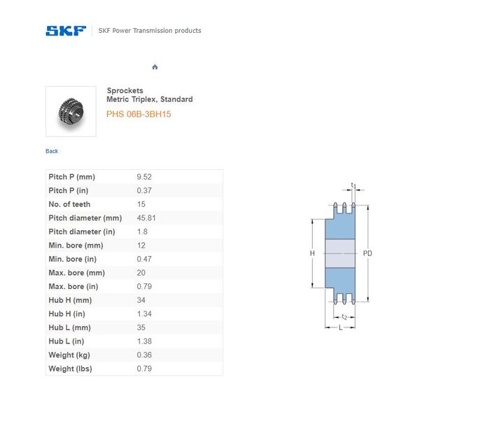 - SKF - 06B3 (3/8) SPROCKET 15 TEETH 3 ROW