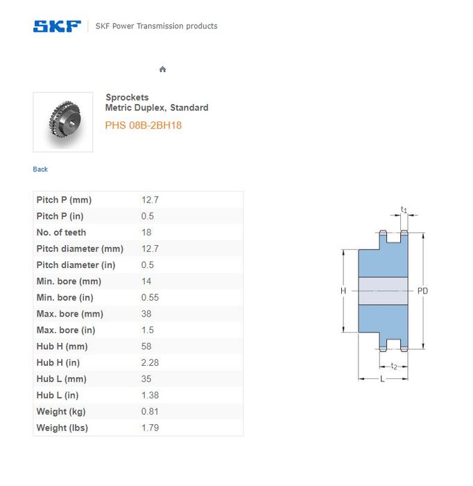 - SKF - 06B2 (3/8) SPROCKET 18 TEETH 2 ROW