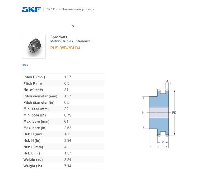 - SKF - 06B2 (3/8) SPROCKET 34 TEETH 2 ROW