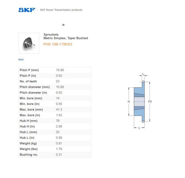 - SKF - 10B1/50/50H (5/8) SPROCKET 23 TEETH 1 ROW