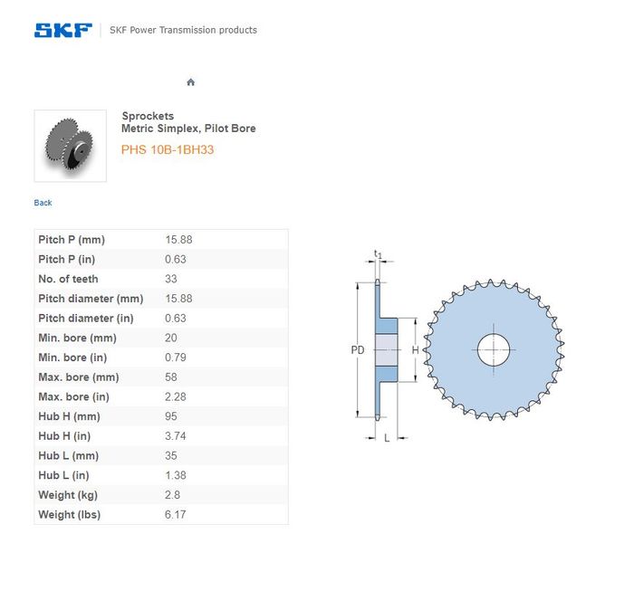 - SKF - 10B1/50/50H (5/8) SPROCKET 33 TEETH 1 ROW
