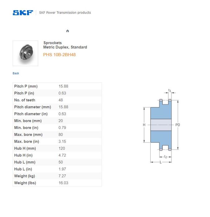 - SKF - 10B2 (5/8) SPROCKET 48 TEETH 2 ROW