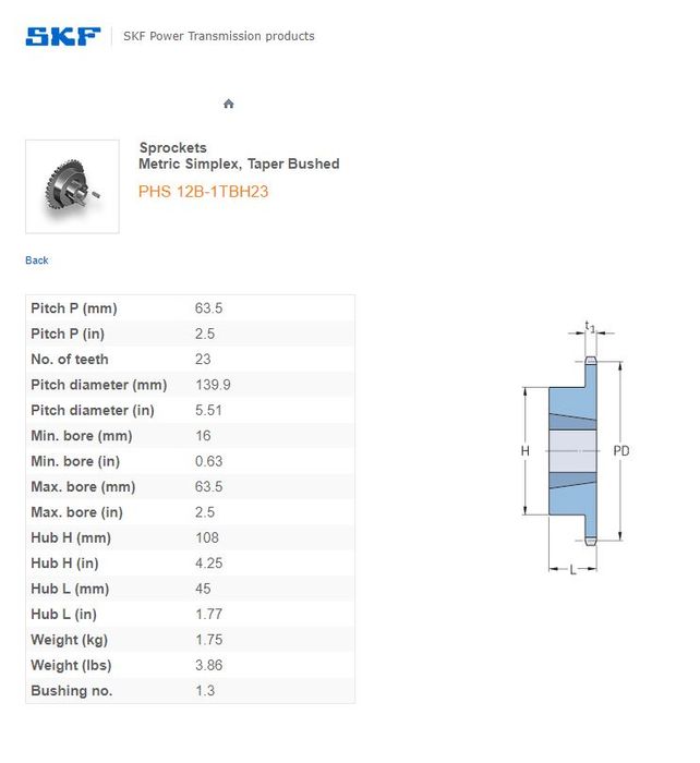 - SKF - 12B1/60/60H (3/4) SPROCKET 23 TEETH 1 ROW